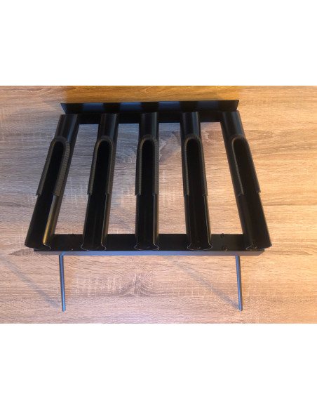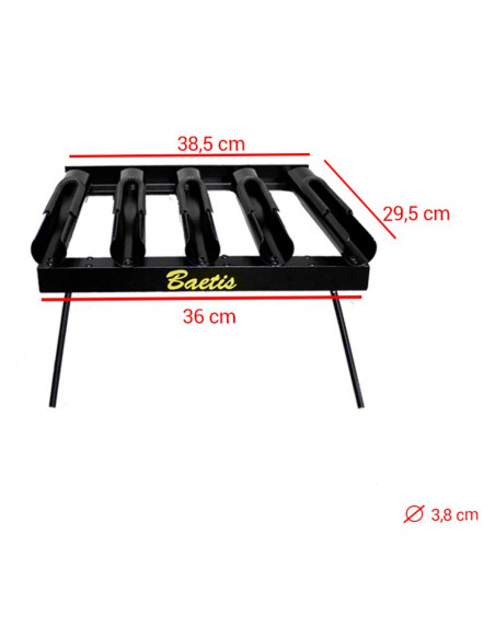 Two retractable U-shaped stems are placed under the tubes and allow the axis of the rods to be oriented at about 30° from the ground.