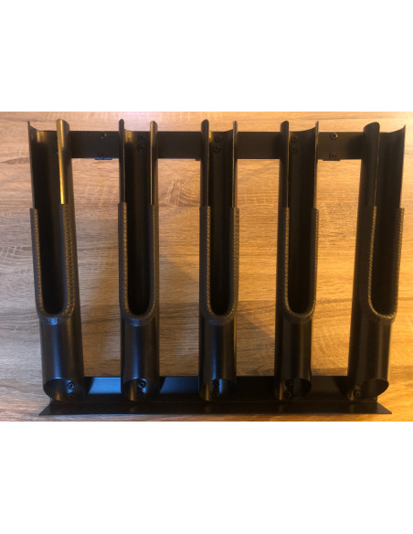 Very light steel rod holder for carrying fly rods, ideal for lake and reservoir fishing, when it is necessary to have several rods mounted with different types of lines (floating, intermediate, hover and sinking) and different choices of flies.