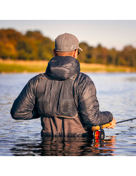 This vest's adjustment properties offer a unique flexibility. You can lower/heighten the pockets 5”/12cm to be able to cross a stream when deep wading or just use the flexibility to suit your preferred placement. Just open the buckle at the top, pull the pocket up and lock. Takes 3 seconds! The vest is convertible and fits our Experience pack, it’s very light (543g) and comfortable to wear.