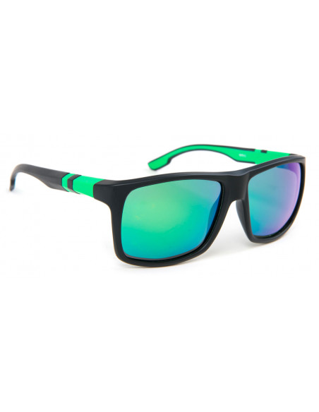 The frame has green rubber details both on the outside and inside the temples, which gives a secure and no-slip fit. They are fitted with grey polarized TAC lens and has a Green Revo mirror coating which gives them a distinct look in conjunction with the green details on the frame.