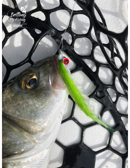 It is possible to shorten the last strands of the leader to add a finer tippet in ø12lbs, ø10lbs or even ø8lbs depending on the size of the flies used, the size of the desired fish, the type of sector prospected and its underwater obstruction (open water, rocky and/or grassy edges, oyster beds, etc.).
