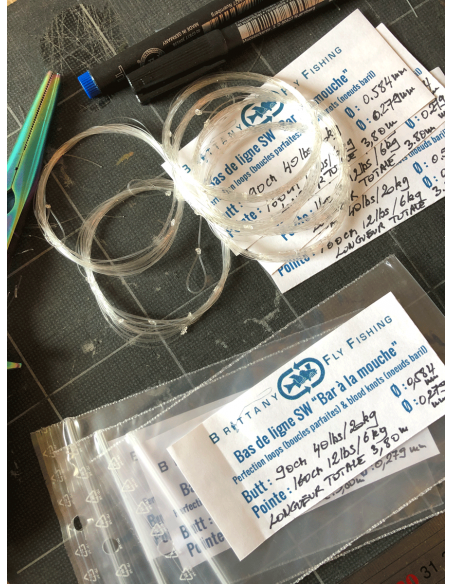 Brittany Fly Fishing "Sea Bass Special" (European sea bass & striped bass) knotted tapered leaders.