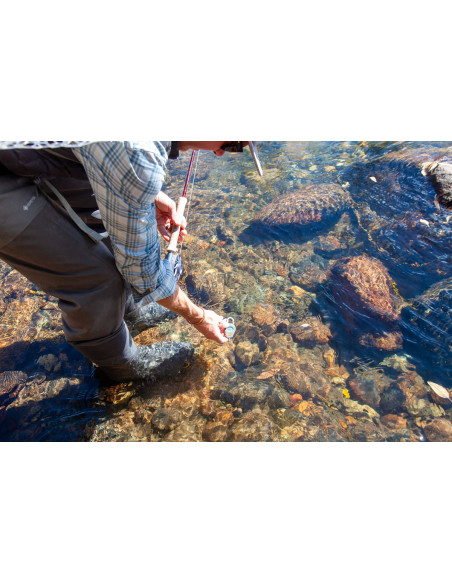 Compact et facile à manipuler, le thermomètre numérique Fishpond Riverkeeper est le seul thermomètre numérique submersible IPX7 conçu par et pour les pêcheurs à la mouche