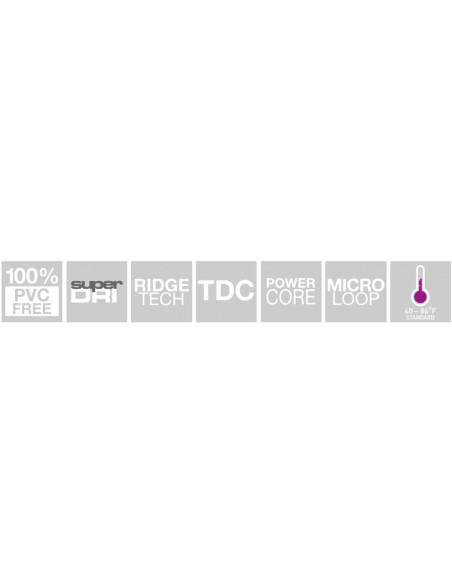 Revêtement Ridge Tech, Power Core à faible élasticité et boucles préformées aux deux extrémités.