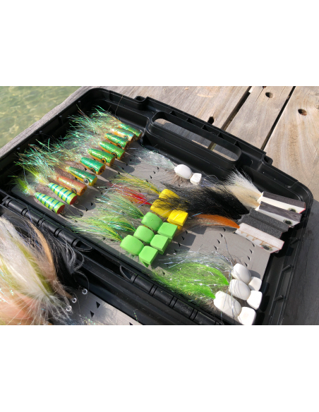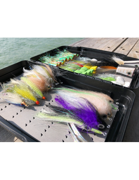 C’est également la boîte idéale pour les énormes streamers à carnassiers : brochet, musky, peacock bass, silure et bien d’autres.