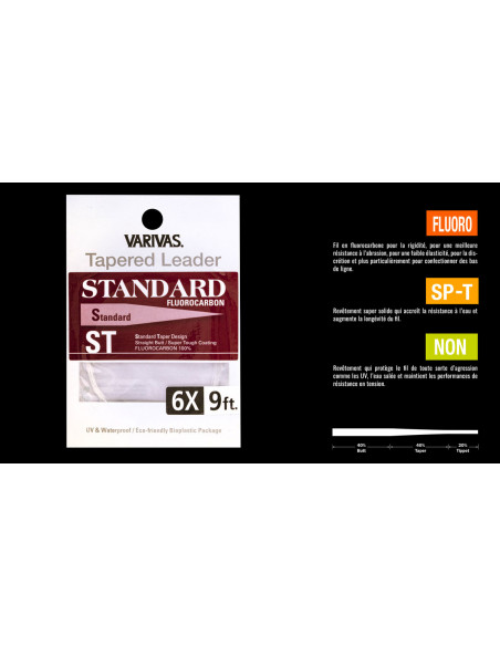 Il s’agit du bas de ligne polyvalent de la gamme Varivas, permettant tout autant de lancer des mouches sèches et des nymphes de grammages variés.