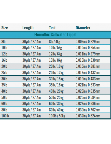 Raideur moyenne, 100% fluorocarbone. Idéal pour les espèces d'eau salée et le lancer de grosses mouches.