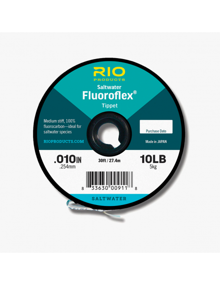 Le fil RIO Fluoroflex Saltwater (pour la pêche à la mouche en eau salée) est un matériau 100% fluorocarbone pour la fabrication des bas de ligne pour la pêche à la mouche en mer.