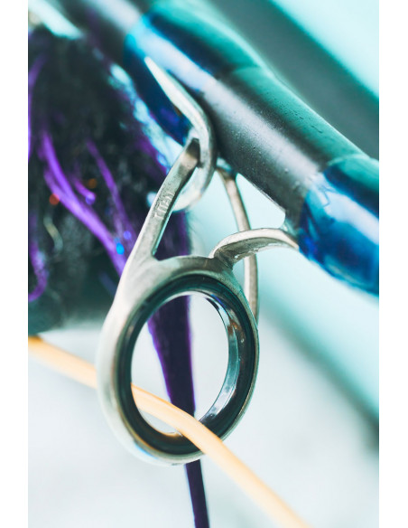 • Tous les anneaux sont ligaturés de fil gris foncé et sur les viroles, les anneaux stripper et les zones du logo, ils sont habillés d’un subtil filet bleu.