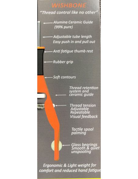 Le porte-bobine Wishbone Bobbin Holder de Simon-Fly est une conception brevetée qui combine pour la première fois un ensemble unique de caractéristiques, afin d'offrir un contrôle précis de la tension du fil, un confort et un freinage vraiment doux.