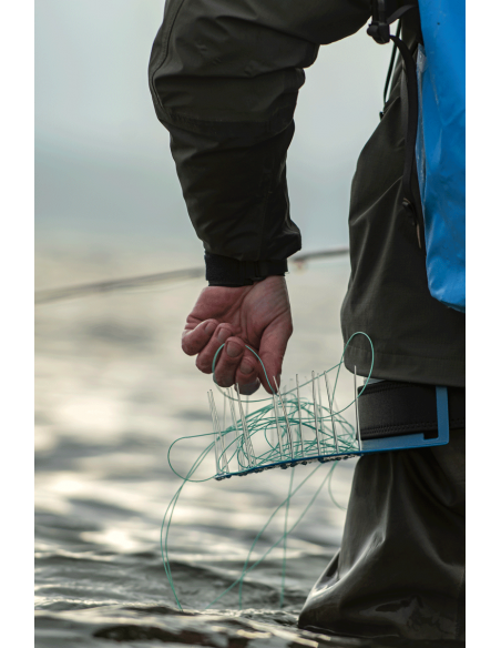 En cas de wading plus profond, il suffit de remonter la ceinture sur votre buste jusqu'à ce que le Flexistripper sorte de l'eau.