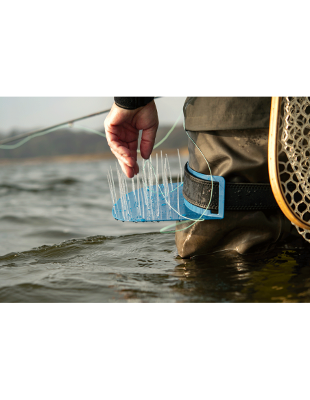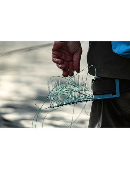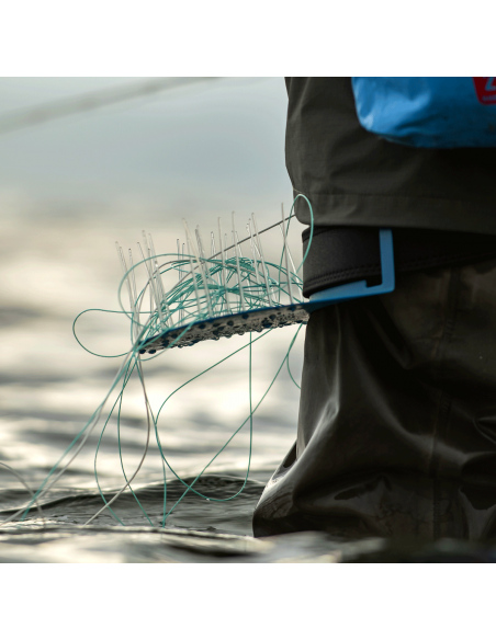 Lorsque vous récupérez la ligne, il suffit de la lâcher sur le FlexiStripper. Les longues tiges (picots) flexibles vont attraper les boucles de la soie.