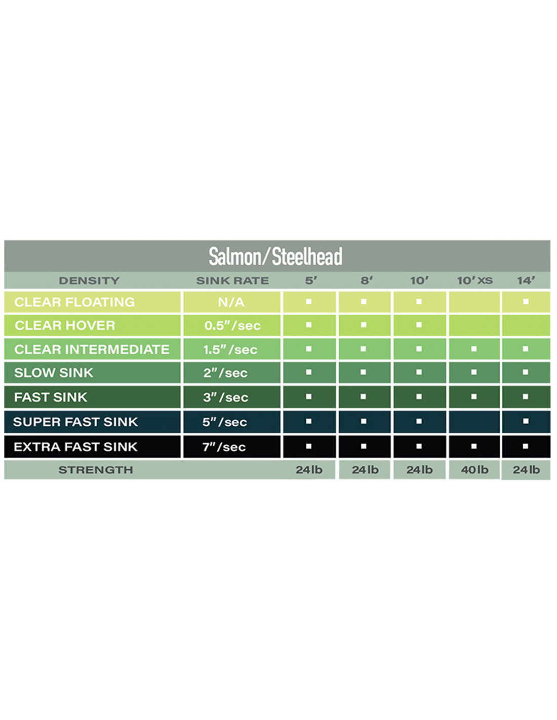 Disponibles dans une large gamme de densités, les Airflo Saumon/Steelhead 3,05 m/10' offrent un arsenal d'options au pêcheur de saumon, de truite de mer et de steelhead.