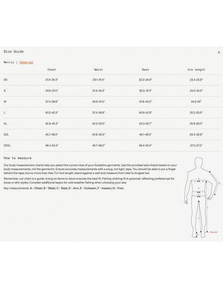 -Nos tableaux des mesures corporelles vous aident à choisir la bonne taille de vos vêtements Guideline.